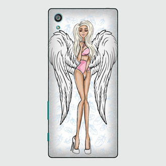 Fashion sketch c изображением девушки-ангела со светлыми волосами