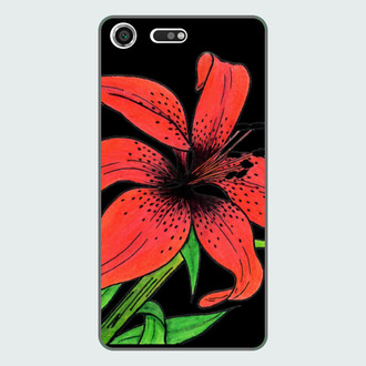 Цветок алой лилии на чёрном фоне
