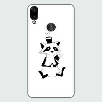 Милый енот со своим любимым растением