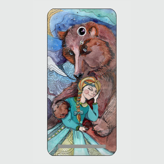 На иллюстрации изображён медведь, оберегающий, защищающий девочку.