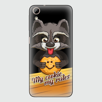Енот показывающий язык держит печеньку с надписью My cookie my rules