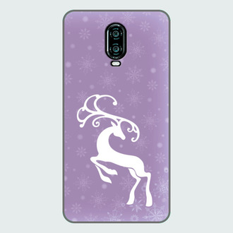 Чехол для OnePlus Новогодний белый олень на фоне снегопада
