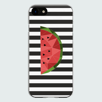 Стильный геометричный принт с полигональным арбузом на черно-белом фоне
