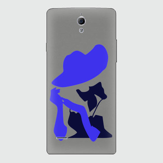 Силуэт девушки в черном платье, с синей шляпой и перчатках