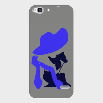 Силуэт девушки в черном платье, с синей шляпой и перчатках