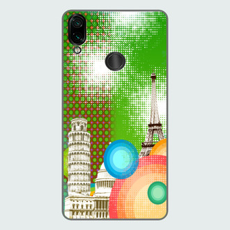 Абстракция, изображение основных достопримечательностей Европейских городов на зеленом фоне