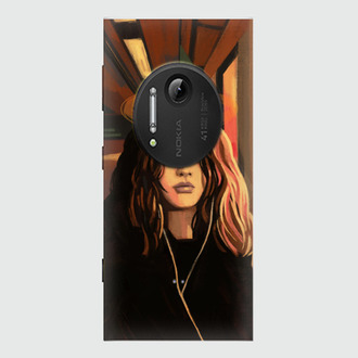 Задумчивая девушка-ангел слушает музыку, смотрит в даль и мечтает о чем то совем.
